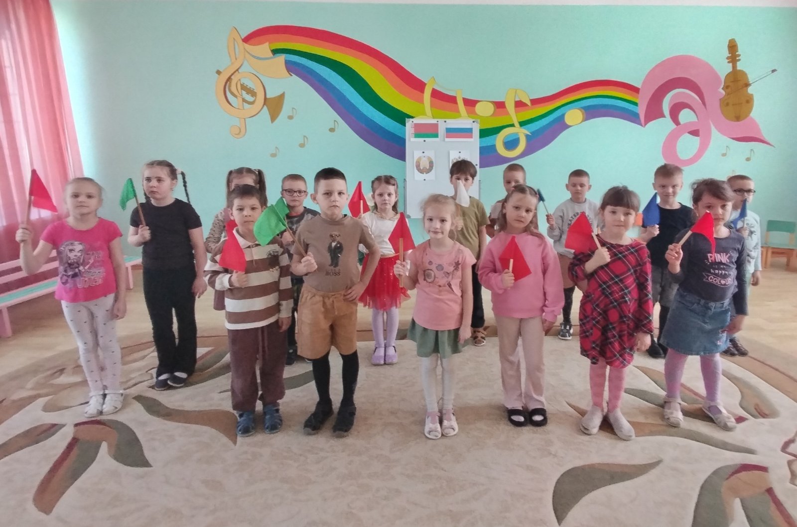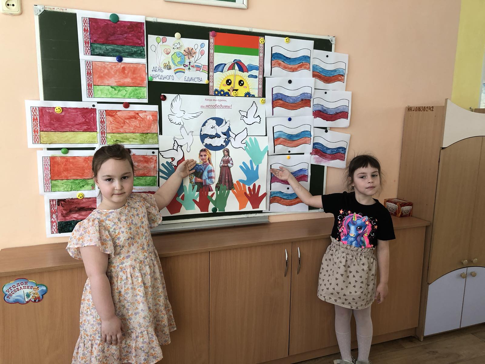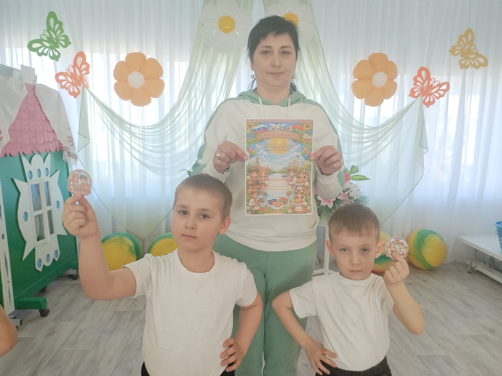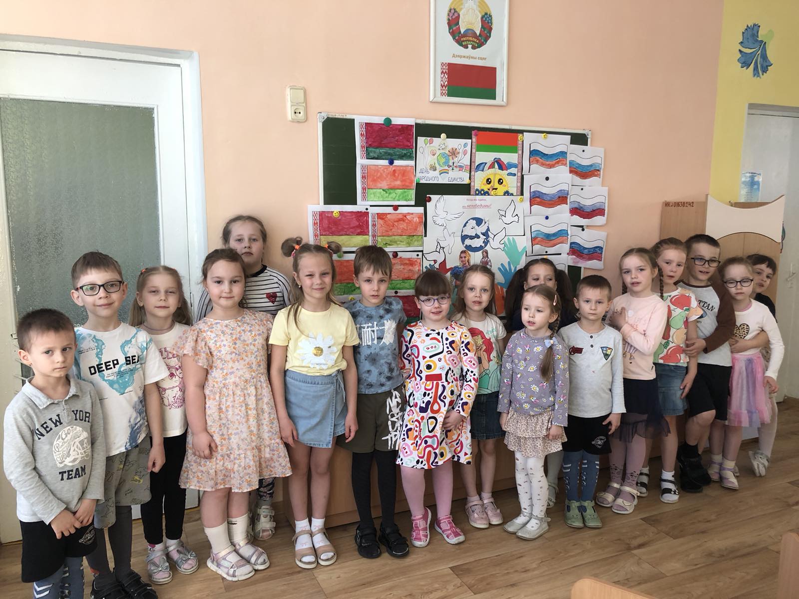 В День единения Беларуси и России в нашем учреждении прошли тематические мероприятия, которые были посвящены этому празднику. Воспитанники старших и средних групп стали активными участниками тематических занятий, бесед, дидактических и народных игр, а также проявили свои изобразительные способности. Все мероприятия были направлены на формирование у детей патриотических чувств, чувства гордости за народ Беларуси и России, уважение к их традициям.