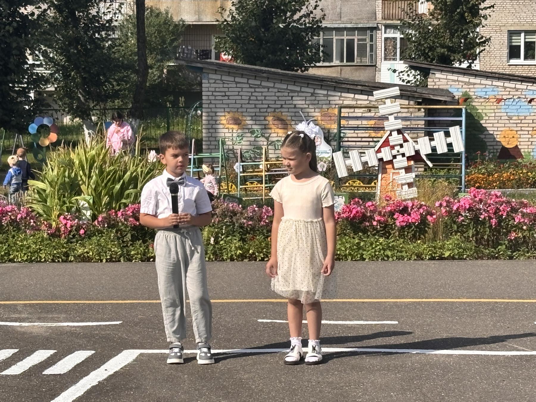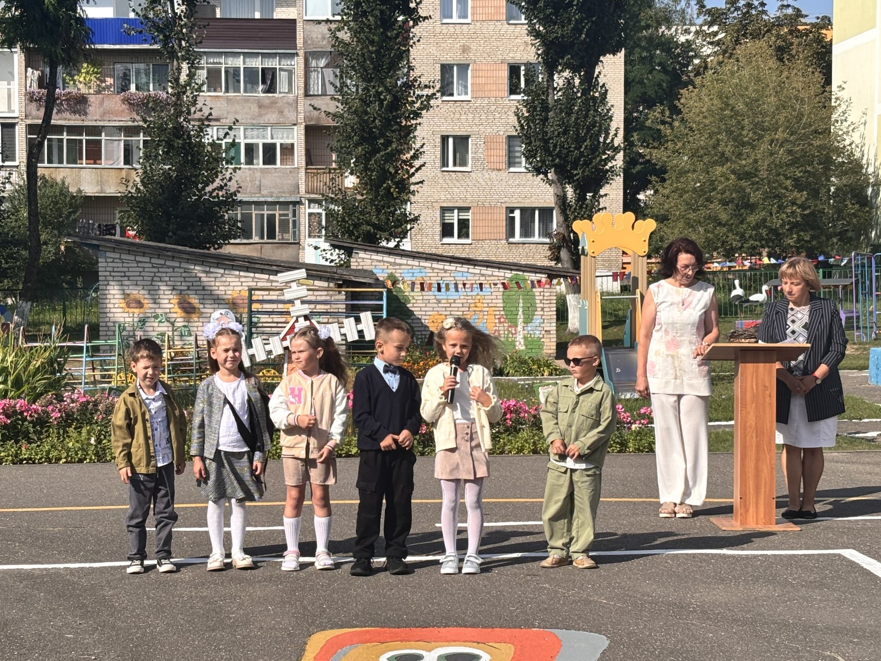Наступил сентябрь, а вместе с ним и самый первый праздник в новом учебном году – День знаний, светлый, волнующий, торжественный. В нашем учреждении первый день нового учебного года прошел ярко и эмоционально. Праздничная линейка собрала всех ребят и взрослых на площадке. Праздник начался с исполнения Государственного гимна Республики Беларусь, поднятия Государственного флага Республики Беларусь, поздравления заведующего Н.А. Нечай. Стихи о Родине, о любимом детском садике, замечательные песни «Мы жывем у Беларусі», «Хорошо у нас в саду» прозвучали на линейке, а также конкурсы и игры продолжились на игровых площадках. Так весело и празднично начался новый учебный год.